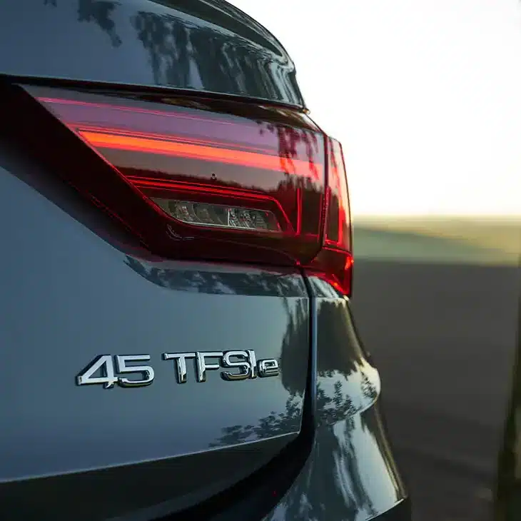 Los modelos híbridos enchufables se denominan “TFSI e”. La adición es una clara indicación de que un vehículo se puede mover de dos maneras. Para trayectos cortos se monta un propulsor eléctrico con una batería compacta y para trayectos más largos un motor de combustión adicional.
