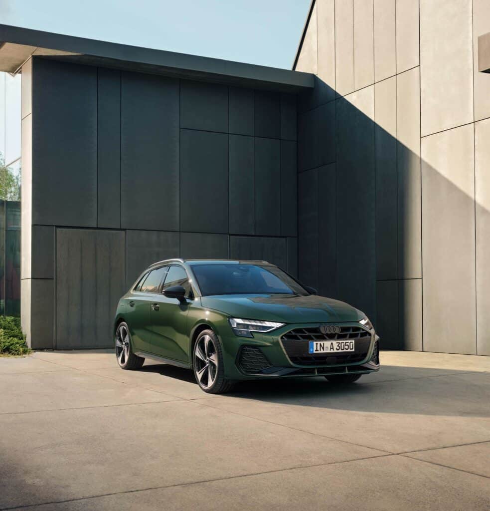 Usted decide con qué pintura el nuevo Audi A3 Sportback despliega su impacto, por ejemplo, en Verde Distrito Metalizado³.