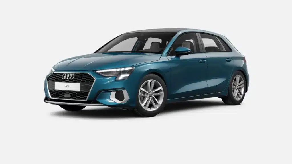 El Audi A3 Sportback en Azul Navarra Metalizado es deportivo y firme en la carretera.